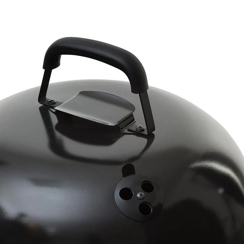 Ce barbecue de diamètre 43 cm dispose de deux poignées : l’une pour le couvercle et l’autre pour un déplacement facile.