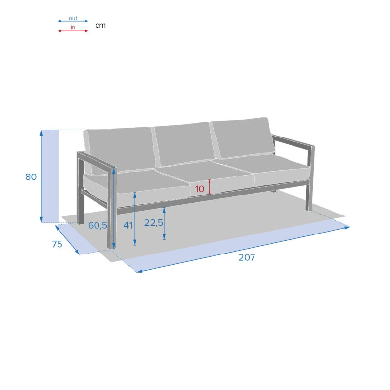 Les coussins en polyester 220 g/m² sont traité déperlants afin de faciliter l’élimination des petites pluies. Ils sont également déhoussables.