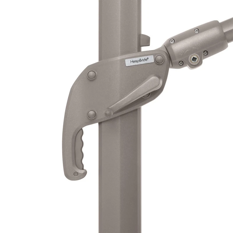 Protégez vous du soleil tout au long de la journée grâce au parasol décentré Melhia carré inclinable coloris argile et lin de la marque Hespéride.
