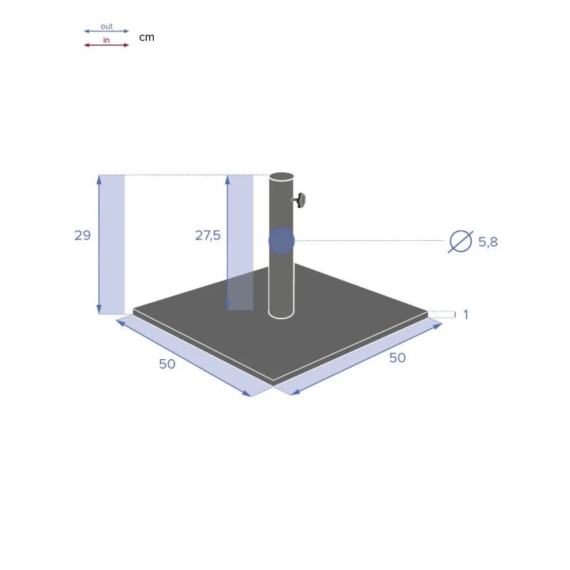 Fourni avec une molette de serrage, il accueillera les parasols ayant un mât compris entre 38 à 48 mm grâce aux 2 bagues de réductions incluses.