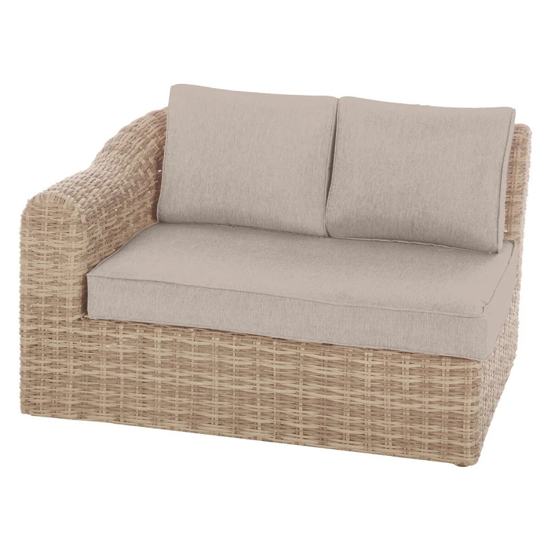 Craquez pour le confort du salon de jardin Moorea d’angle 5 places coloris savana de marque Hespéride.