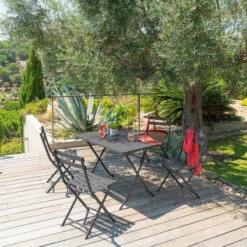 Pratique, la table carrée est pliante pour un rangement facile et rapide.
