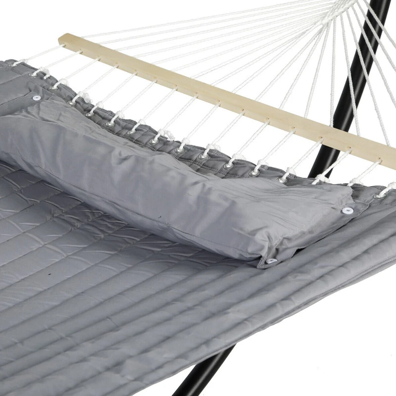 Doté d’un revêtement matelassé et d’un petit oreiller (110 x 30 cm, épaisseur 4 cm), la toile est conçue pour un confort optimal.