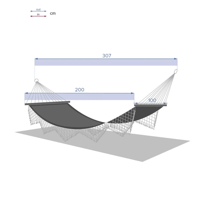 Hamac à suspendre composé d’une toile et de 2 barres en bois,