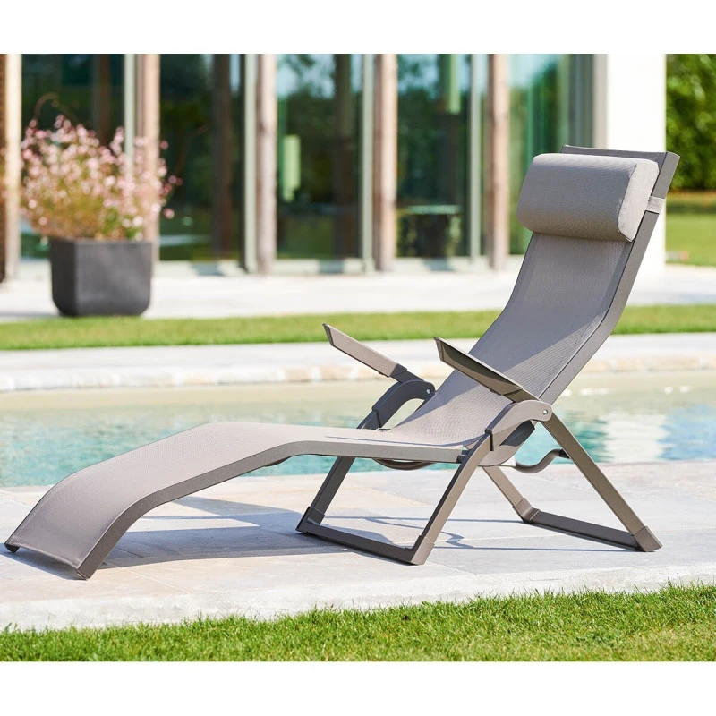 Détendez vous au soleil grâce à ce transat 2 positions Decima en coloris noisette / praline de la marque Hespéride.