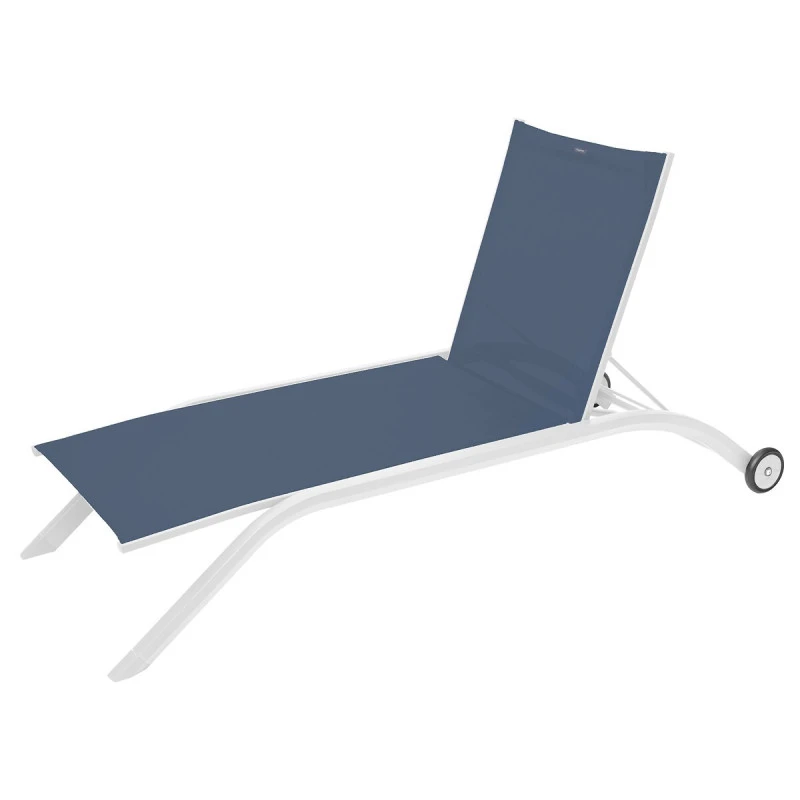 Profitez des beaux jours grâce à ce transat bleu pétrole et structure blanche de la marque Hespéride.
